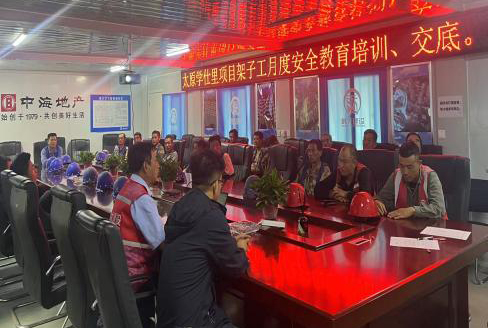 項目部不定時組織管理人員學習各項安全內(nèi)容,在現(xiàn)場定期對工人進行安全教育,切實做到三個必須:管行業(yè)必須管安全、管業(yè)務必須管安全、管生產(chǎn)經(jīng)營必須管安全,落實安全責任,推動安全發(fā)展,提高安全認知。